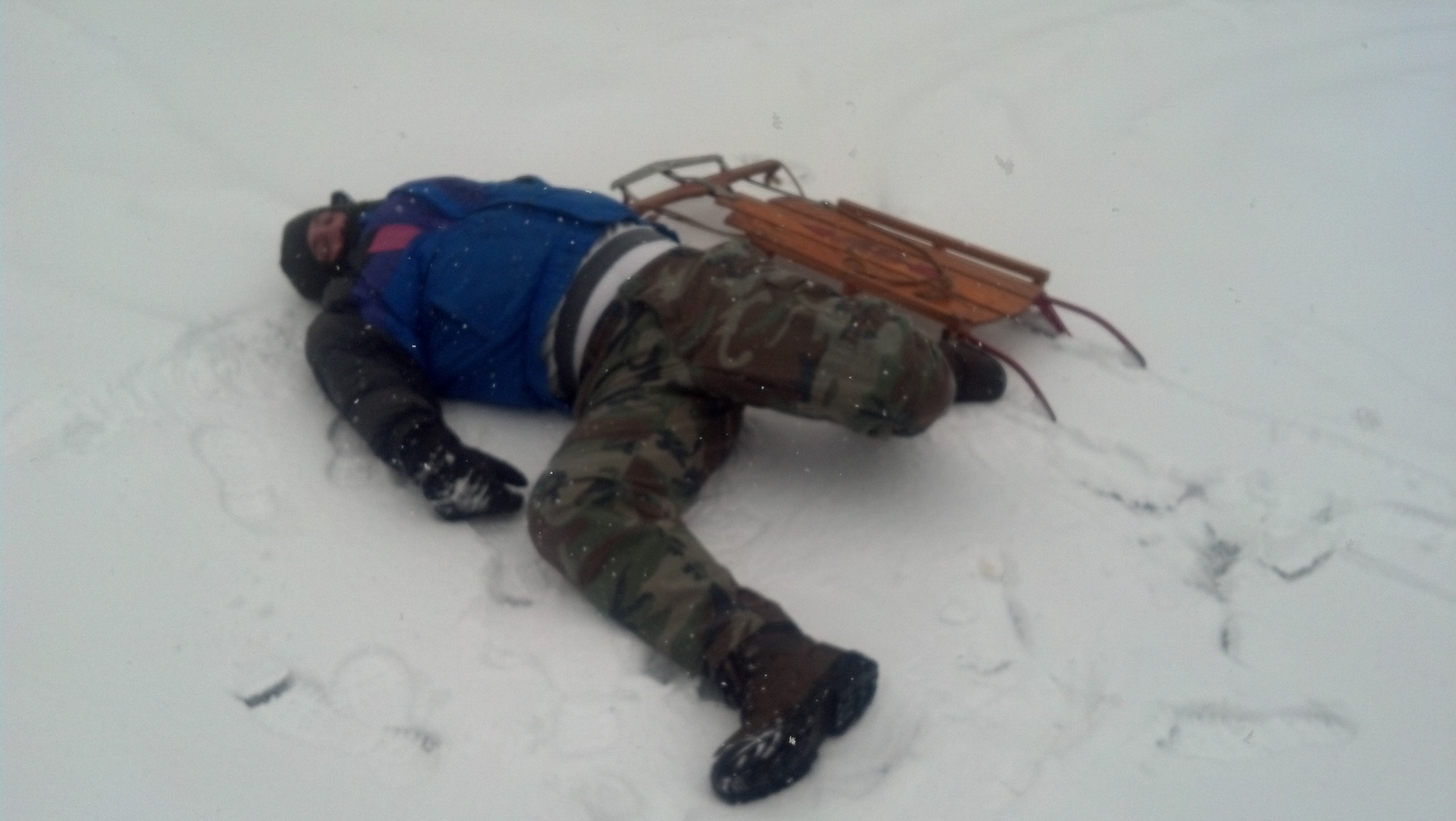 2. The snow was not right for sledding, and Bert collapsed after working so hard to make it down the hill.