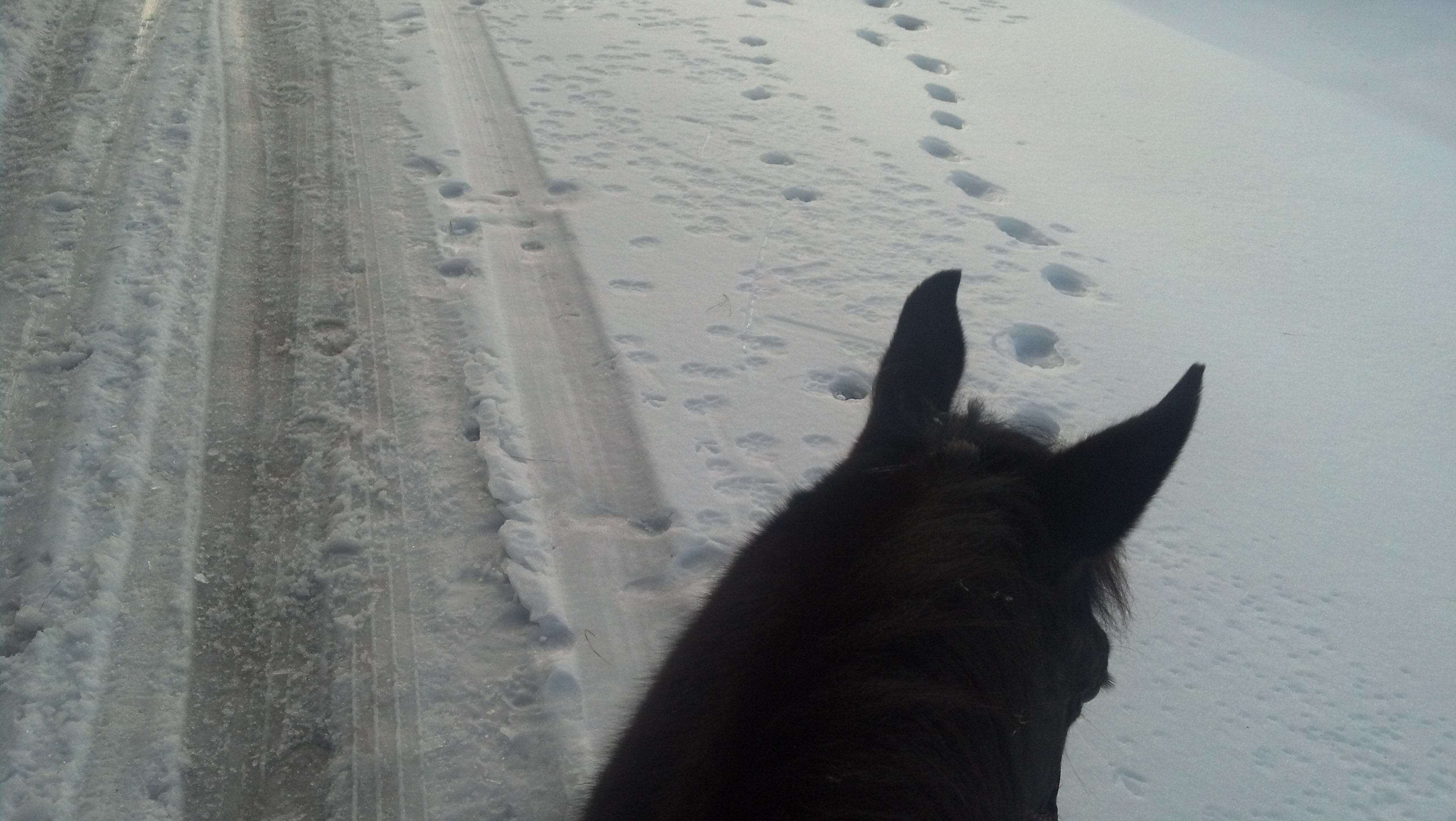 4. My view from Darcy’s back in the snow.