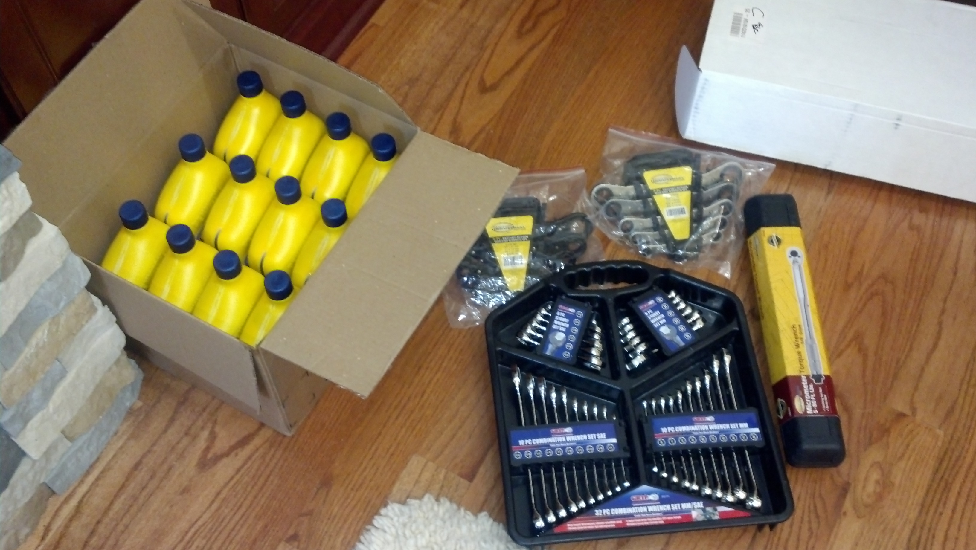 Photo 2: What does an engineer actually want for Christmas? Apparently, a 12 pack of boat motor oil and a bunch of wrenches.